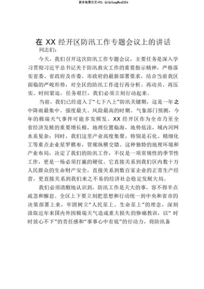 【七哥公文】2025年:【七哥公文】在XX经开区防汛工作专题会议上的讲话_20250815_213028+更多免费公文+VX:QiGeGongWen2024+更多免费公文+VX:QiGeGongWen2024