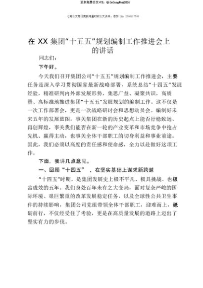 【七哥公文】2025年:【七哥公文】在XX集团“十五五”规划编制工作推进会上的讲话+更多免费公文+VX:QiGeGongWen2024+更多免费公文+VX:QiGeGongWen2024