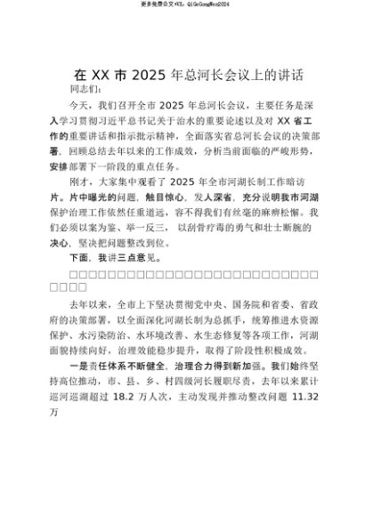 【七哥公文】2025年:【七哥公文】在XX市2025年总河长会议上的讲话_20250815_213027+更多免费公文+VX:QiGeGongWen2024+更多免费公文+VX:QiGeGongWen2024