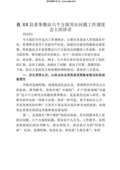 【七哥公文】2025年:【七哥公文】在XX县重拳整治六个方面突出问题工作调度会上的讲话_20250815_213027+更多免费公文+VX:QiGeGongWen2024+更多免费公文+VX:QiGeGongWen2024