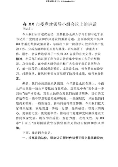 【七哥公文】2025年:【七哥公文】在XX市委党建领导小组(市委市政府党风廉政建设责任制领导小组)会议上的讲话_20250815_213028+更多免费公文+VX:QiGeGongWen2024+更多免费公文+VX:QiGeGongWen2024