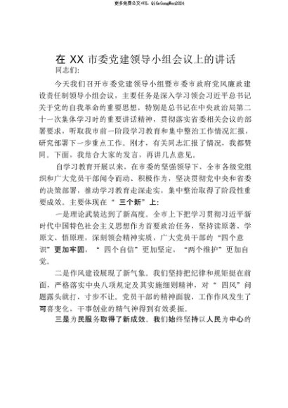 【七哥公文】2025年:【七哥公文】在XX市委党建领导小组(党风廉政建设责任制领导小组)会议上的讲话_20250815_213028+更多免费公文+VX:QiGeGongWen2024+更多免费公文+VX:QiGeGongWen2024