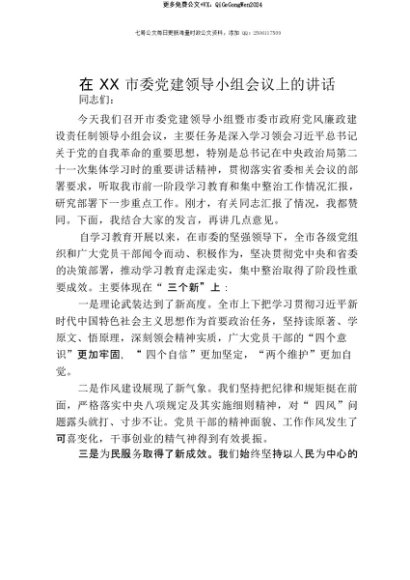 【七哥公文】2025年:【七哥公文】在XX市委党建领导小组(党风廉政建设责任制领导小组)会议上的讲话+更多免费公文+VX:QiGeGongWen2024+更多免费公文+VX:QiGeGongWen2024