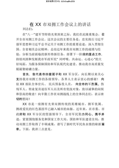 【七哥公文】2025年:【七哥公文】在XX市双拥工作会议上的讲话_20250815_213028+更多免费公文+VX:QiGeGongWen2024+更多免费公文+VX:QiGeGongWen2024