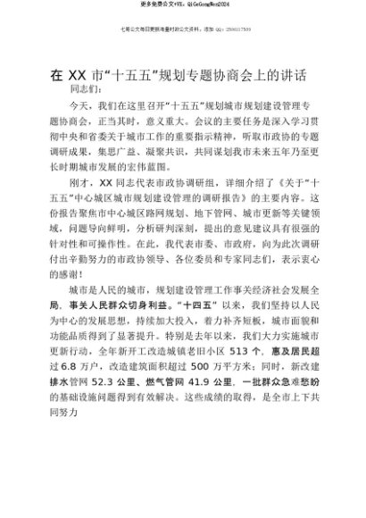 【七哥公文】2025年:【七哥公文】在XX市“十五五”规划专题协商会上的讲话+更多免费公文+VX:QiGeGongWen2024+更多免费公文+VX:QiGeGongWen2024