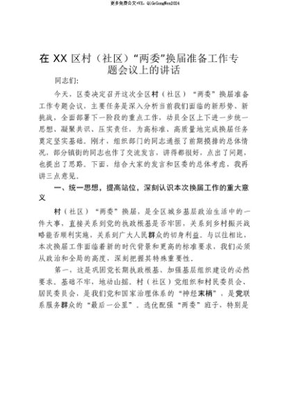 【七哥公文】2025年:【七哥公文】在XX区村(社区)“两委”换届准备工作专题会议上的讲话_20250815_213027+更多免费公文+VX:QiGeGongWen2024+更多免费公文+VX:QiGeGongWen2024