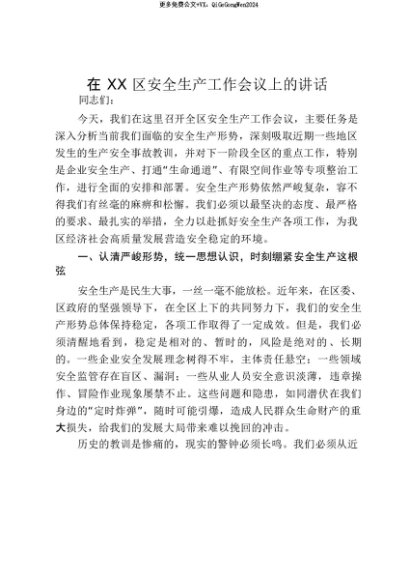 【七哥公文】2025年:【七哥公文】在XX区安全生产工作会议上的讲话_20250815_213027+更多免费公文+VX:QiGeGongWen2024+更多免费公文+VX:QiGeGongWen2024