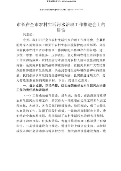 【七哥公文】2025年:【七哥公文】市长在全市农村生活污水治理工作推进会上的讲话+更多免费公文+VX:QiGeGongWen2024+更多免费公文+VX:QiGeGongWen2024