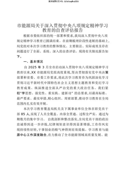 【七哥公文】2025年:【七哥公文】市能源局关于深入贯彻中央八项规定精神学习教育的自查评估报告_20250815_213027+更多免费公文+VX:QiGeGongWen2024+更多免费公文+VX:QiGeGongWen2024