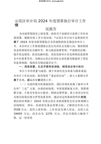 【七哥公文】2025年:【七哥公文】示范区审计局2024年度预算执行审计工作情况报告_20250815_213027+更多免费公文+VX:QiGeGongWen2024+更多免费公文+VX:QiGeGongWen2024