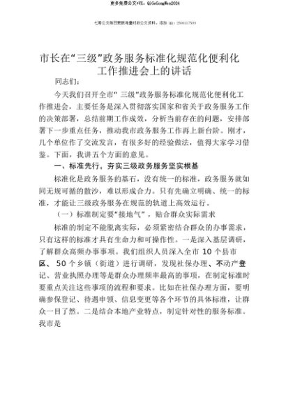 【七哥公文】2025年:【七哥公文】市长在“三级”政务服务标准化规范化便利化工作推进会上的讲话+更多免费公文+VX:QiGeGongWen2024+更多免费公文+VX:QiGeGongWen2024