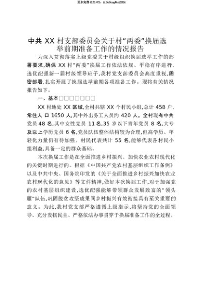 【七哥公文】2025年:【七哥公文】中共XX村支部委员会关于村“两委”换届选举前期准备工作的情况报告_20250815_213027+更多免费公文+VX:QiGeGongWen2024+更多免费公文+VX:QiGeGongWen2024