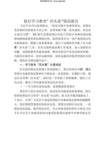 【七哥公文】2025年:【七哥公文】银行学习贯彻中央八项规定精神教育“回头看”情况报告8300字_20250815_213027+更多免费公文+VX:QiGeGongWen2024+更多免费公文+VX:QiGeGongWen2024