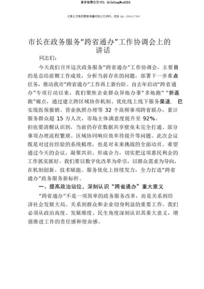 【七哥公文】2025年:【七哥公文】市长在政务服务“跨省通办”工作协调会上的讲话+更多免费公文+VX:QiGeGongWen2024+更多免费公文+VX:QiGeGongWen2024