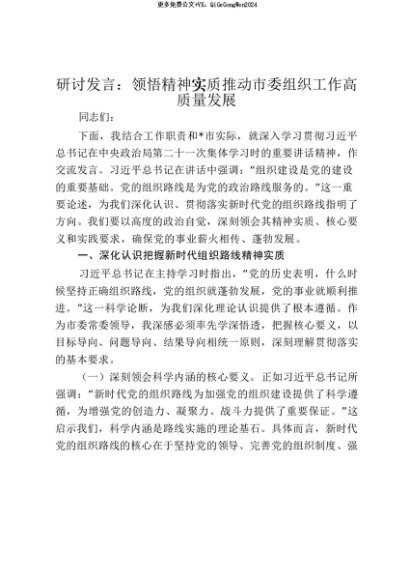 【七哥公文】2025年:【七哥公文】研讨发言:领悟精神实质 推动市委组织工作高质量发展_20250815_213027+更多免费公文+VX:QiGeGongWen2024+更多免费公文+VX:QiGeGongWen2024