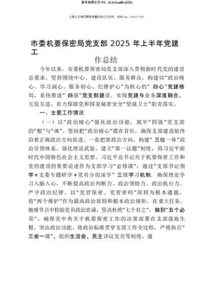 【七哥公文】2025年:【七哥公文】市委机要保密局党支部2025年上半年党建工作总结+更多免费公文+VX:QiGeGongWen2024+更多免费公文+VX:QiGeGongWen2024