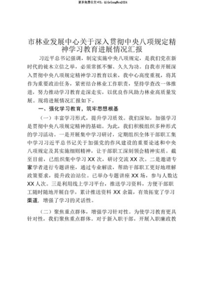 【七哥公文】2025年:【七哥公文】市林业发展中心关于深入贯彻中央八项规定精神学习教育进展情况汇报_20250815_213027+更多免费公文+VX:QiGeGongWen2024+更多免费公文+VX:QiGeGongWen2024
