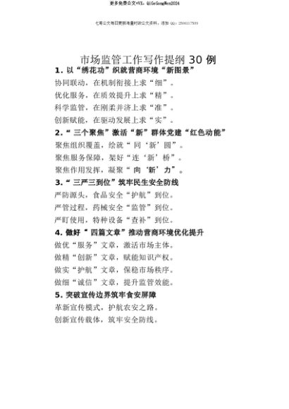 【七哥公文】2025年:【七哥公文】市场监管工作写作提纲30例+更多免费公文+VX:QiGeGongWen2024+更多免费公文+VX:QiGeGongWen2024