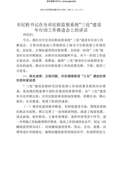 【七哥公文】2025年:【七哥公文】市纪检书记在全市纪检监察系统“三化”建设年行动工作推进会上的讲话+更多免费公文+VX:QiGeGongWen2024+更多免费公文+VX:QiGeGongWen2024