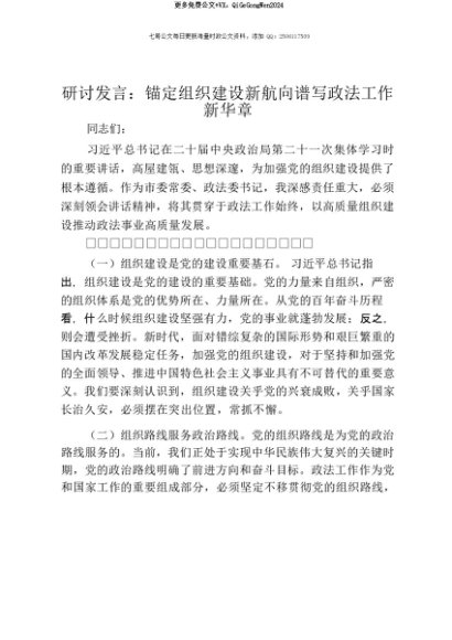 【七哥公文】2025年:【七哥公文】研讨发言:锚定组织建设新航向 谱写政法工作新华章+更多免费公文+VX:QiGeGongWen2024+更多免费公文+VX:QiGeGongWen2024