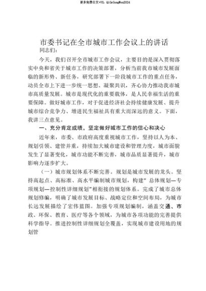 【七哥公文】2025年:【七哥公文】市委书记在全市城市工作会议上的讲话_20250815_213027+更多免费公文+VX:QiGeGongWen2024+更多免费公文+VX:QiGeGongWen2024