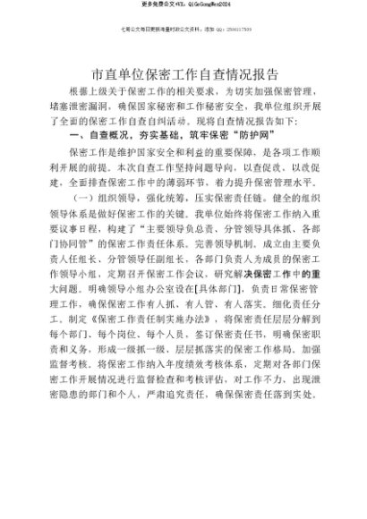 【七哥公文】2025年:【七哥公文】市直单位保密工作自查情况报告+更多免费公文+VX:QiGeGongWen2024+更多免费公文+VX:QiGeGongWen2024