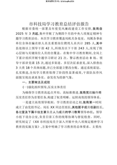 【七哥公文】2025年:【七哥公文】市科技局贯彻中央八项规定精神学习教育总结评估报告_20250815_213027+更多免费公文+VX:QiGeGongWen2024+更多免费公文+VX:QiGeGongWen2024