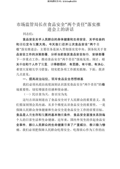 【七哥公文】2025年:【七哥公文】市场监管局长在食品安全“两个责任”落实推进会上的讲话_20250815_213027+更多免费公文+VX:QiGeGongWen2024+更多免费公文+VX:QiGeGongWen2024