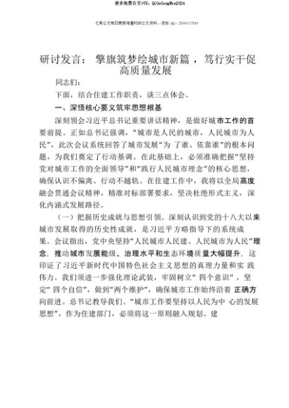 【七哥公文】2025年:【七哥公文】研讨发言:擎旗筑梦绘城市新篇,笃行实干促高质量发展+更多免费公文+VX:QiGeGongWen2024+更多免费公文+VX:QiGeGongWen2024