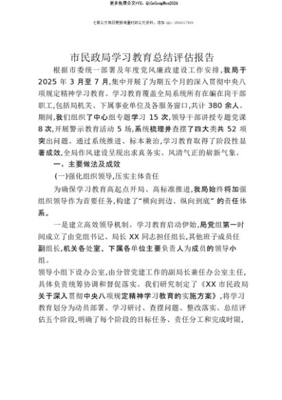 【七哥公文】2025年:【七哥公文】市民政局贯彻中央八项规定精神学习教育总结评估报告+更多免费公文+VX:QiGeGongWen2024+更多免费公文+VX:QiGeGongWen2024