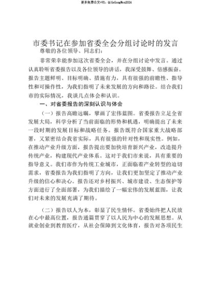 【七哥公文】2025年:【七哥公文】市委书记在参加省委全会分组讨论时的发言_20250815_213027+更多免费公文+VX:QiGeGongWen2024+更多免费公文+VX:QiGeGongWen2024