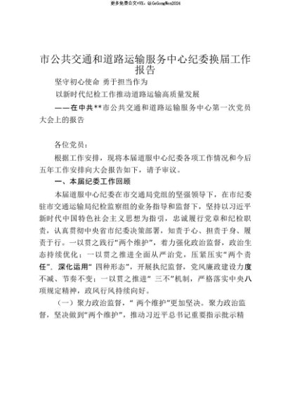 【七哥公文】2025年:【七哥公文】市公共交通和道路运输服务中心纪委换届工作报告_20250815_213027+更多免费公文+VX:QiGeGongWen2024+更多免费公文+VX:QiGeGongWen2024