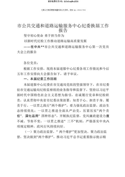 【七哥公文】2025年:【七哥公文】市公共交通和道路运输服务中心纪委换届工作报告+更多免费公文+VX:QiGeGongWen2024+更多免费公文+VX:QiGeGongWen2024