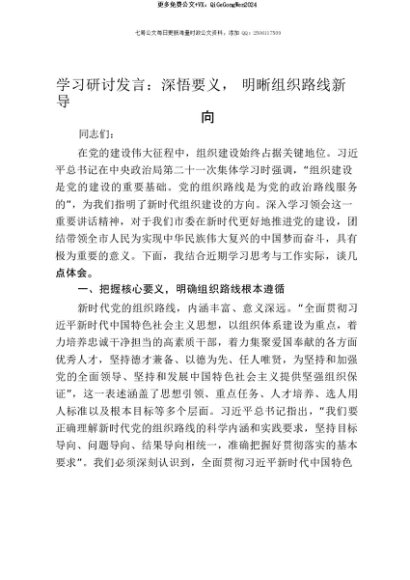 【七哥公文】2025年:【七哥公文】学习研讨发言:深悟要义,明晰组织路线新导向+更多免费公文+VX:QiGeGongWen2024+更多免费公文+VX:QiGeGongWen2024