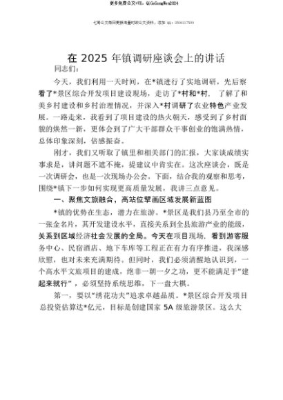 【七哥公文】2025年:【七哥公文】在2025年镇调研座谈会上的讲话+更多免费公文+VX:QiGeGongWen2024+更多免费公文+VX:QiGeGongWen2024