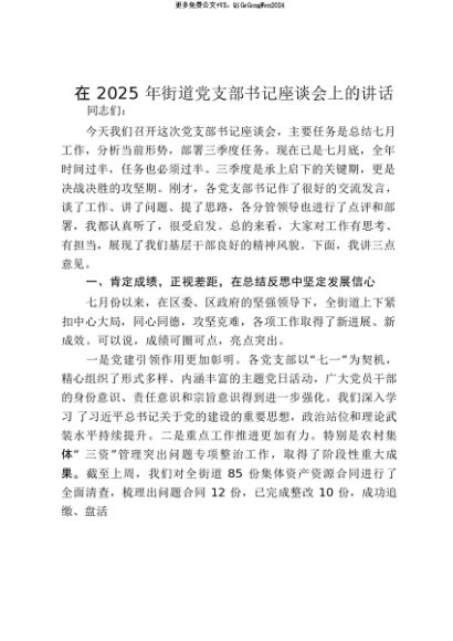 【七哥公文】2025年:【七哥公文】在2025年街道党支部书记座谈会上的讲话_20250815_213027+更多免费公文+VX:QiGeGongWen2024+更多免费公文+VX:QiGeGongWen2024