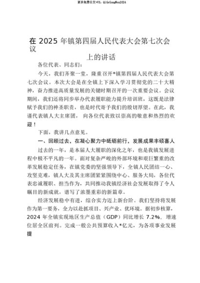 【七哥公文】2025年:【七哥公文】在2025年镇第四届人民代表大会第七次会议上的讲话_20250815_213027+更多免费公文+VX:QiGeGongWen2024+更多免费公文+VX:QiGeGongWen2024