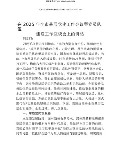 【七哥公文】2025年:【七哥公文】在2025年全市基层党建工作会议暨党员队伍建设工作座谈会上的讲话+更多免费公文+VX:QiGeGongWen2024+更多免费公文+VX:QiGeGongWen2024