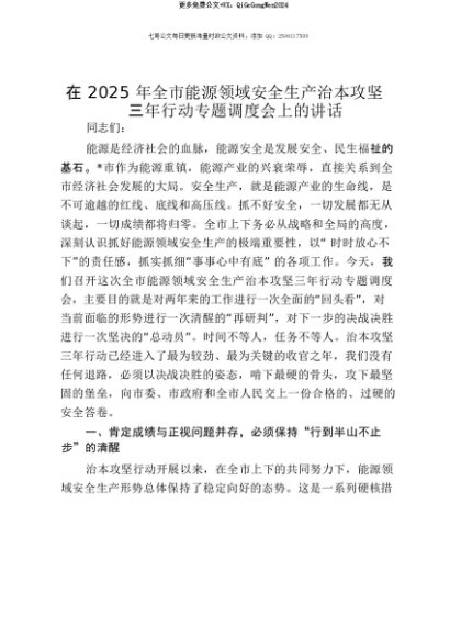 【七哥公文】2025年:【七哥公文】在2025年全市能源领域安全生产治本攻坚三年行动专题调度会上的讲话+更多免费公文+VX:QiGeGongWen2024+更多免费公文+VX:QiGeGongWen2024