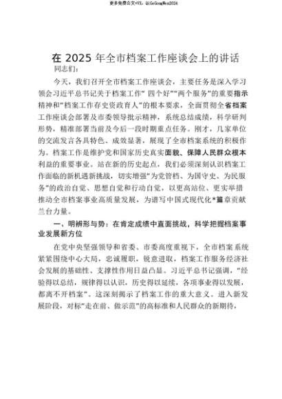 【七哥公文】2025年:【七哥公文】在2025年全市档案工作座谈会上的讲话_20250815_213026+更多免费公文+VX:QiGeGongWen2024+更多免费公文+VX:QiGeGongWen2024