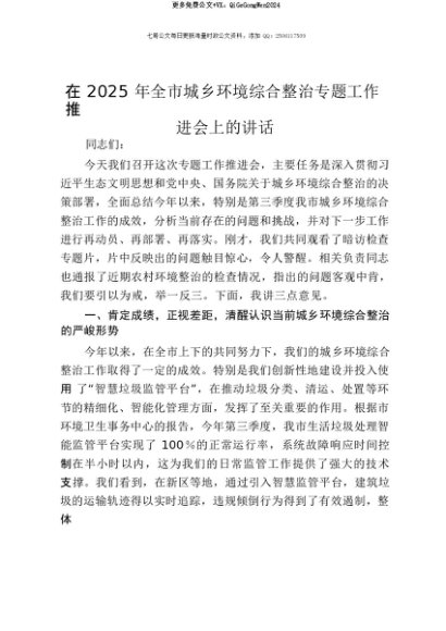 【七哥公文】2025年:【七哥公文】在2025年全市城乡环境综合整治专题工作推进会上的讲话+更多免费公文+VX:QiGeGongWen2024+更多免费公文+VX:QiGeGongWen2024