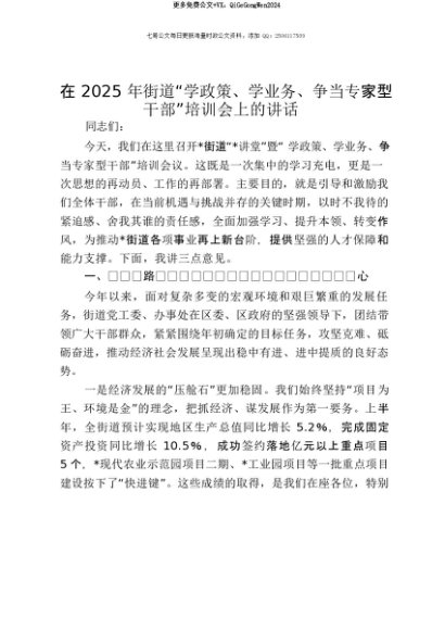 【七哥公文】2025年:【七哥公文】在2025年街道“学政策、学业务、争当专家型干部”培训会上的讲话+更多免费公文+VX:QiGeGongWen2024+更多免费公文+VX:QiGeGongWen2024