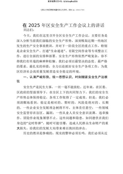 【七哥公文】2025年:【七哥公文】在2025年区安全生产工作会议上的讲话+更多免费公文+VX:QiGeGongWen2024+更多免费公文+VX:QiGeGongWen2024