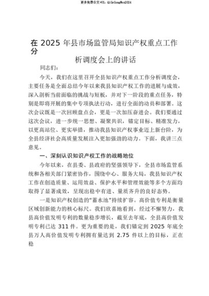 【七哥公文】2025年:【七哥公文】在2025年县市场监管局知识产权重点工作分析调度会上的讲话_20250815_213027+更多免费公文+VX:QiGeGongWen2024+更多免费公文+VX:QiGeGongWen2024