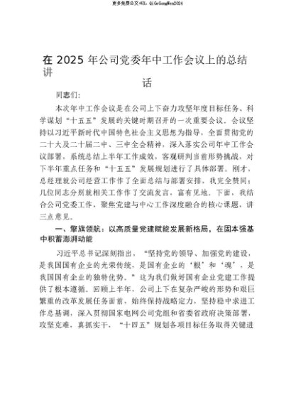 【七哥公文】2025年:【七哥公文】在2025年公司党委年中工作会议上的总结讲话_20250815_213026+更多免费公文+VX:QiGeGongWen2024+更多免费公文+VX:QiGeGongWen2024