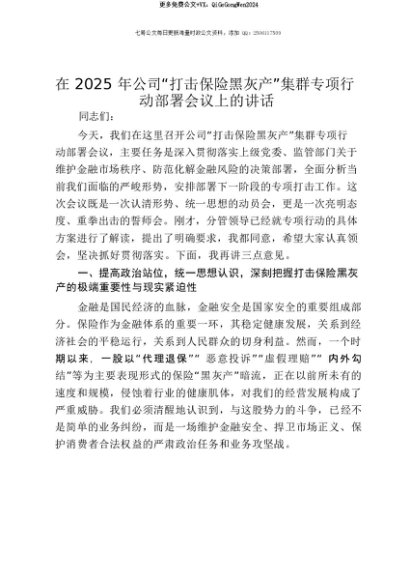 【七哥公文】2025年:【七哥公文】在2025年公司“打击保险黑灰产”集群专项行动部署会议上的讲话+更多免费公文+VX:QiGeGongWen2024+更多免费公文+VX:QiGeGongWen2024