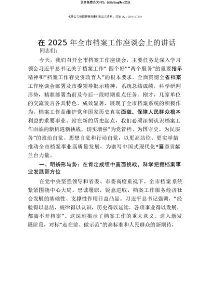 【七哥公文】2025年:【七哥公文】在2025年全市档案工作座谈会上的讲话+更多免费公文+VX:QiGeGongWen2024+更多免费公文+VX:QiGeGongWen2024