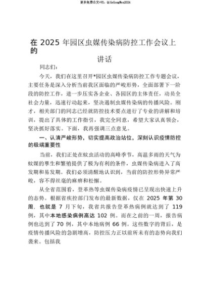 【七哥公文】2025年:【七哥公文】在2025年园区虫媒传染病防控工作会议上的讲话_20250815_213027+更多免费公文+VX:QiGeGongWen2024+更多免费公文+VX:QiGeGongWen2024