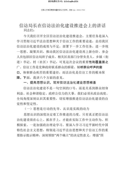 【七哥公文】2025年:【七哥公文】信访局长在信访法治化建设推进会上的讲话+更多免费公文+VX:QiGeGongWen2024+更多免费公文+VX:QiGeGongWen2024