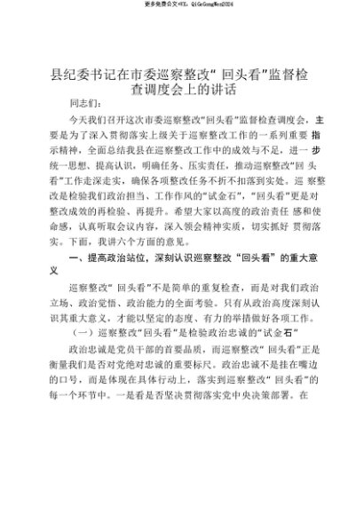 【七哥公文】2025年:【七哥公文】县纪委书记在市委巡察整改“回头看”监督检查调度会上的讲话_20250815_213025+更多免费公文+VX:QiGeGongWen2024+更多免费公文+VX:QiGeGongWen2024